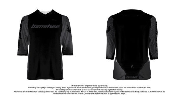 Jersey's are manufactured by Primal. All are 3/4 sleeve and include 2 zip pockets in the lower back.